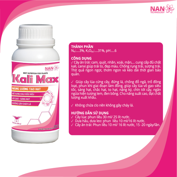 - Kali và silic hữu hiệu hấp thu nhanh, rất an toàn cho cây trồng (mát cây).